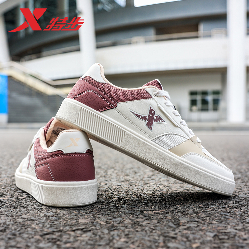 透气2025新款 秋季 低帮小白鞋 轻便休闲运动鞋 特步男鞋 男款 网面板鞋