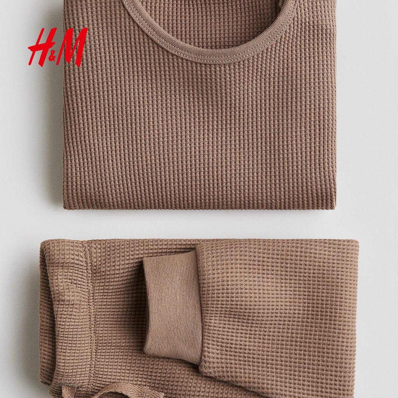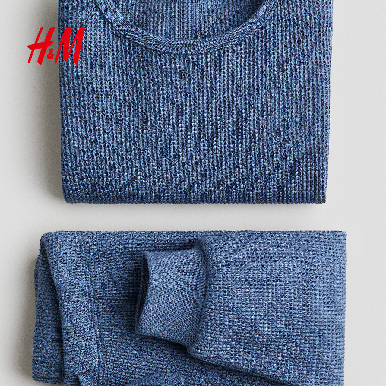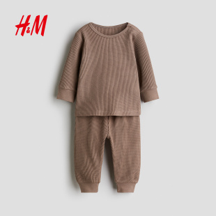 2025秋季 2件式 柔软华夫格棉质长袖 长裤 1005036 HM童装 套装 男婴套装