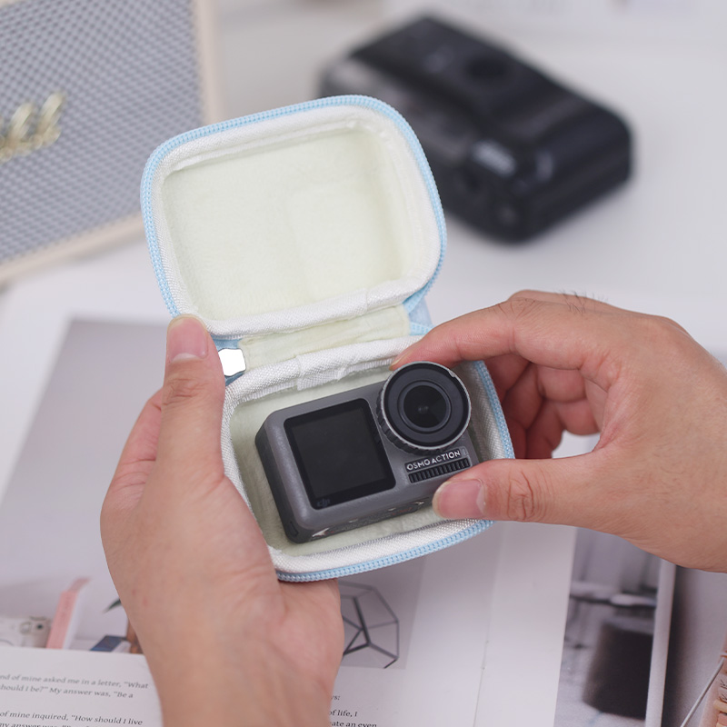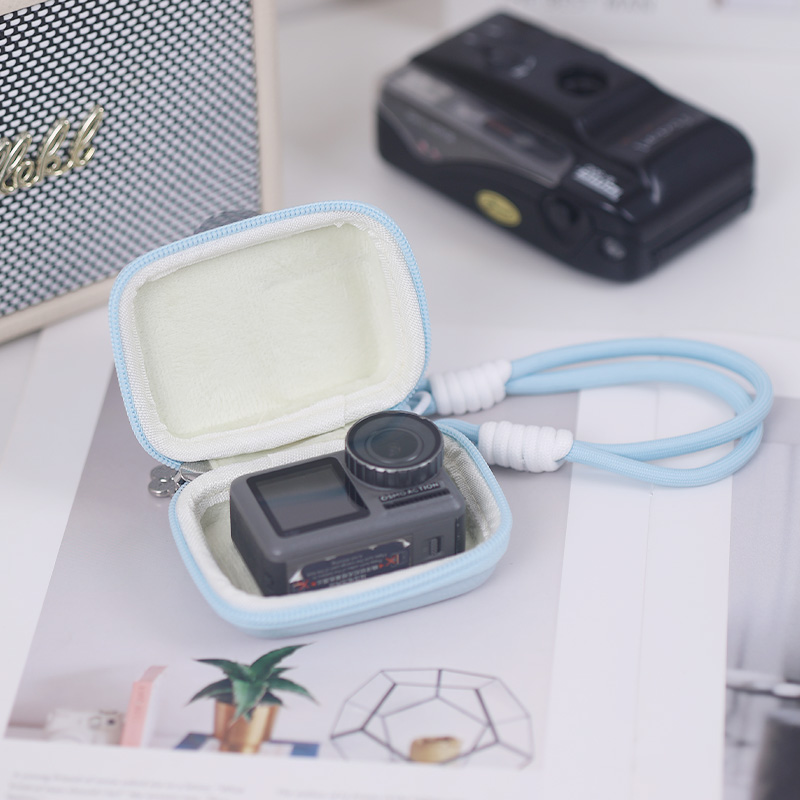 5Pro运动相机加绒防刮蹭收纳盒子马卡龙色搭配简约手绳高级款 运动相机便携收纳包 Action3 适用于大疆DJI