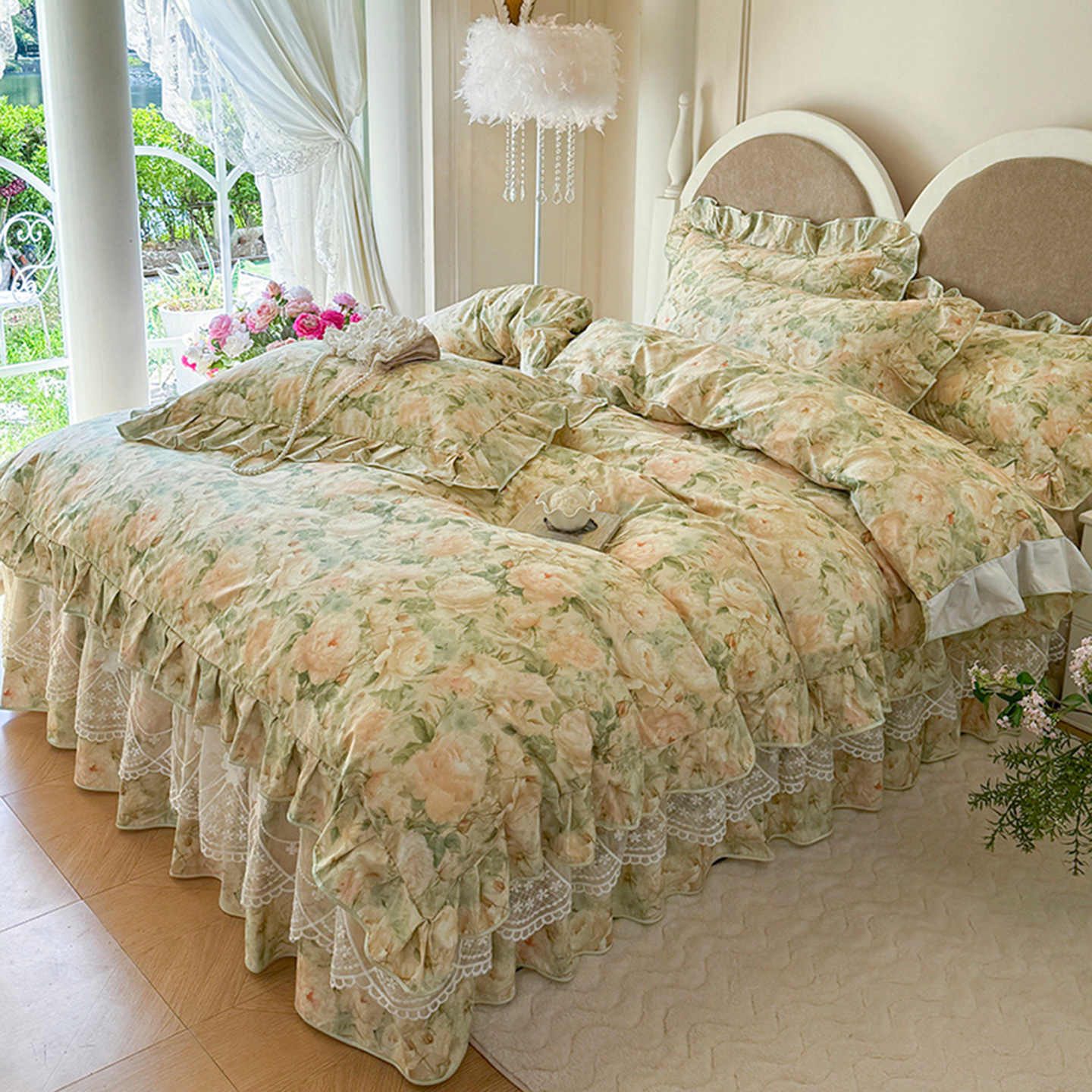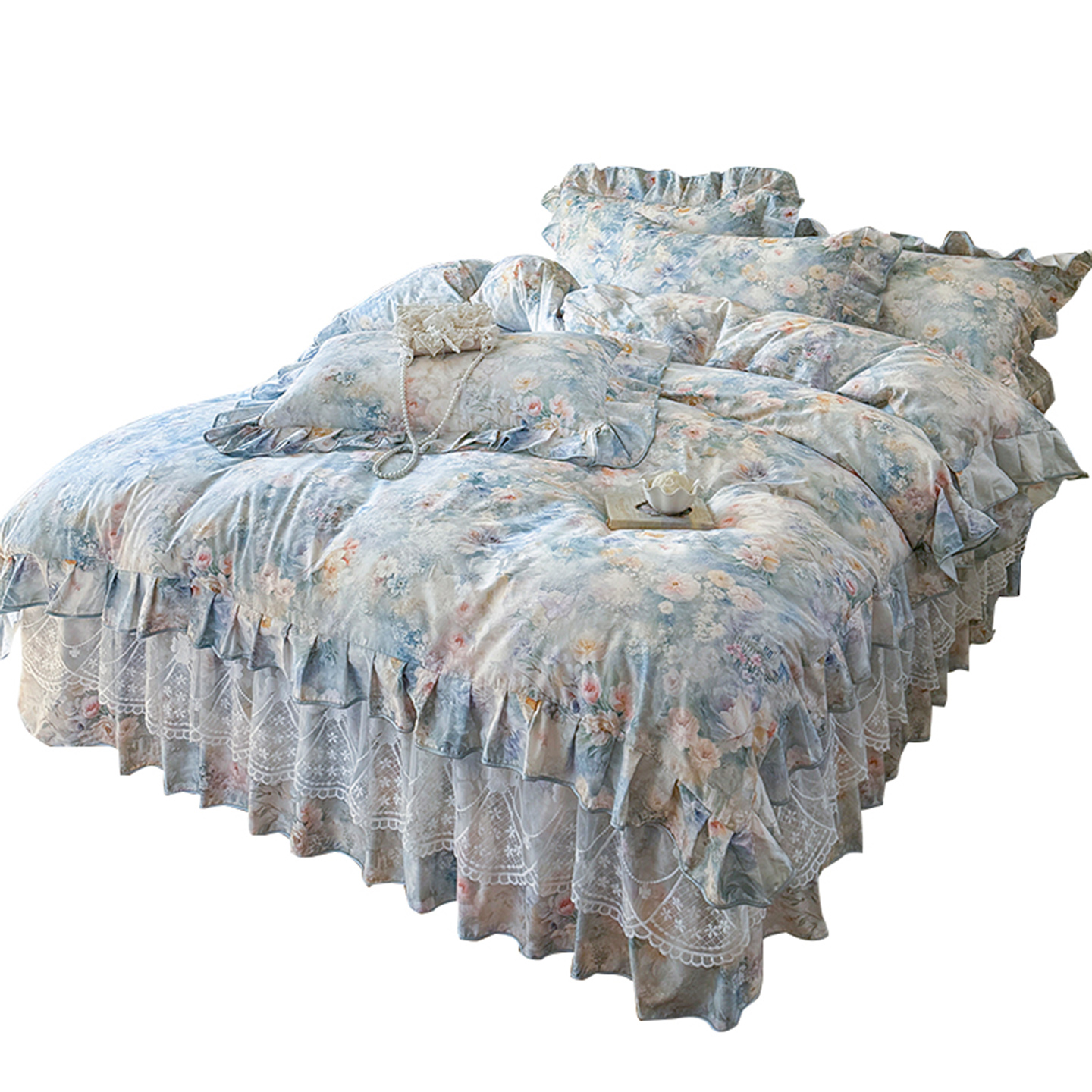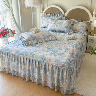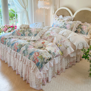 通用 四季 全棉床裙四件套花卉数码 印花纯棉单被套三件套带花边韩版