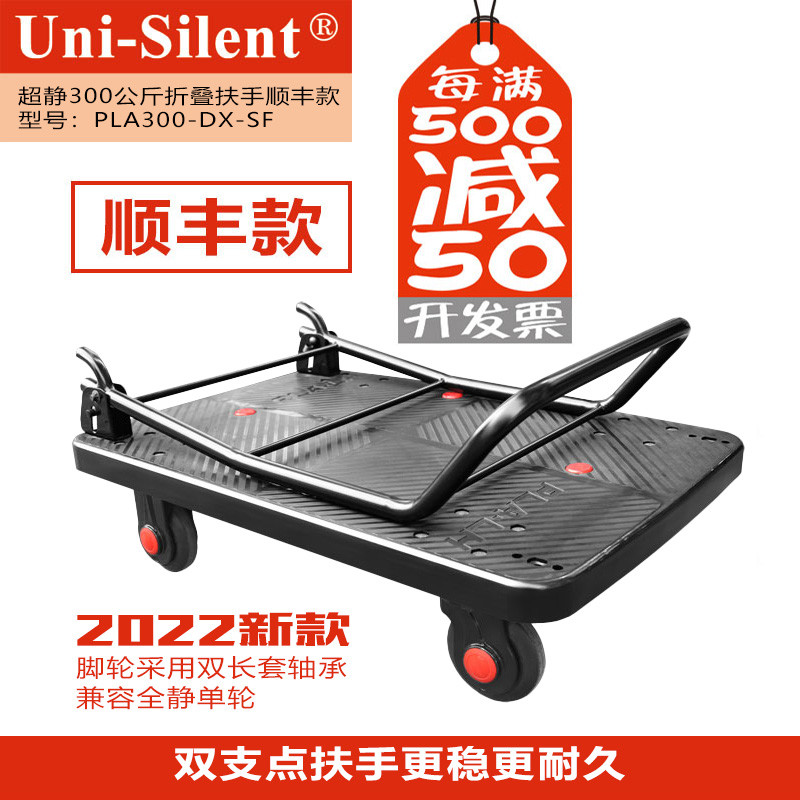 黑色耕牛静音折叠平板车手推车拉货车快递车uni silent连和手推车