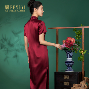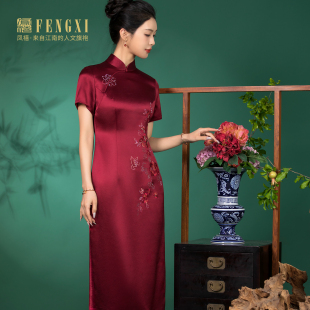菲梦伊原创钉珠提花连衣裙女秋季 国风高端气质贵妇旗袍裙子 新中式