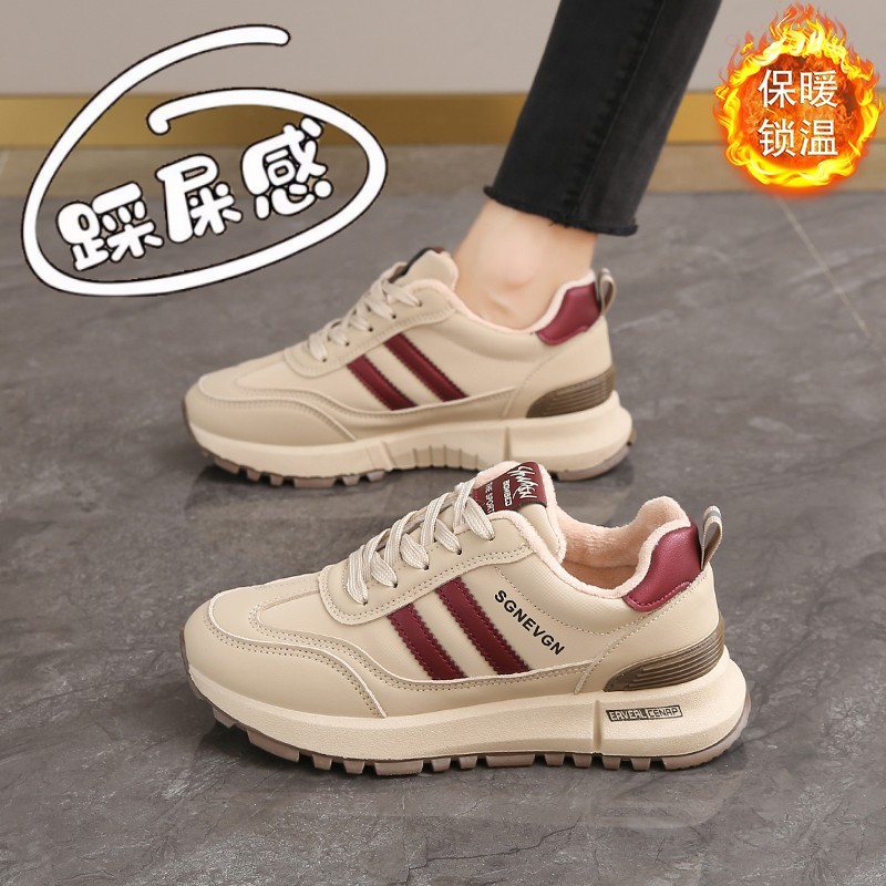 子革面厚底休闲鞋 硬糖鞋 加绒保暖运动鞋 女2025秋冬新款 V2乔丹棉鞋