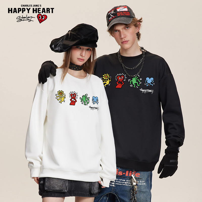 查尔斯桃心彩色卡通涂鸦圆领卫衣男女春秋季 趣味休闲落肩上衣 新款