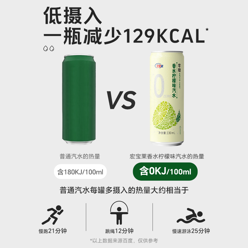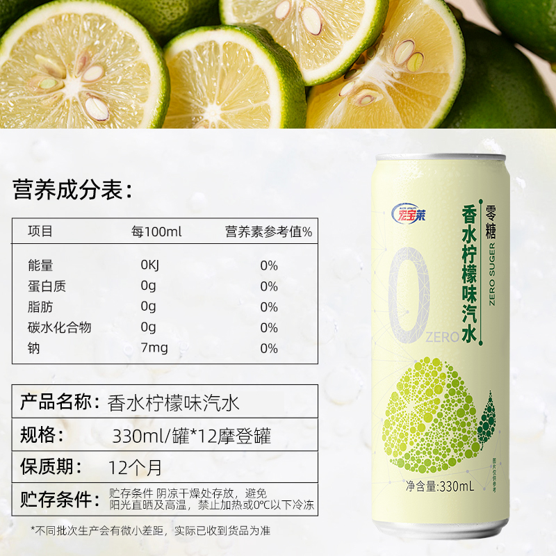 宏宝莱无糖饮料0糖0脂0卡香水柠檬12 24罐整箱碳酸果味饮品气泡水
