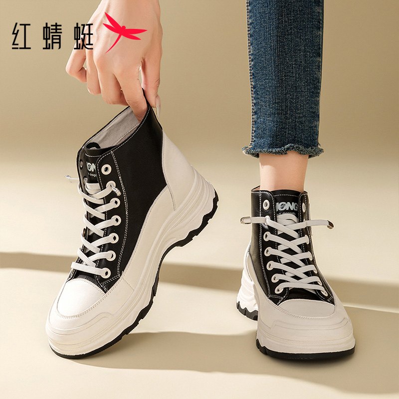 运动鞋 高帮休闲鞋 秋冬新款 子学生厚底男鞋 皮面鞋 征服鸿星尔克板鞋