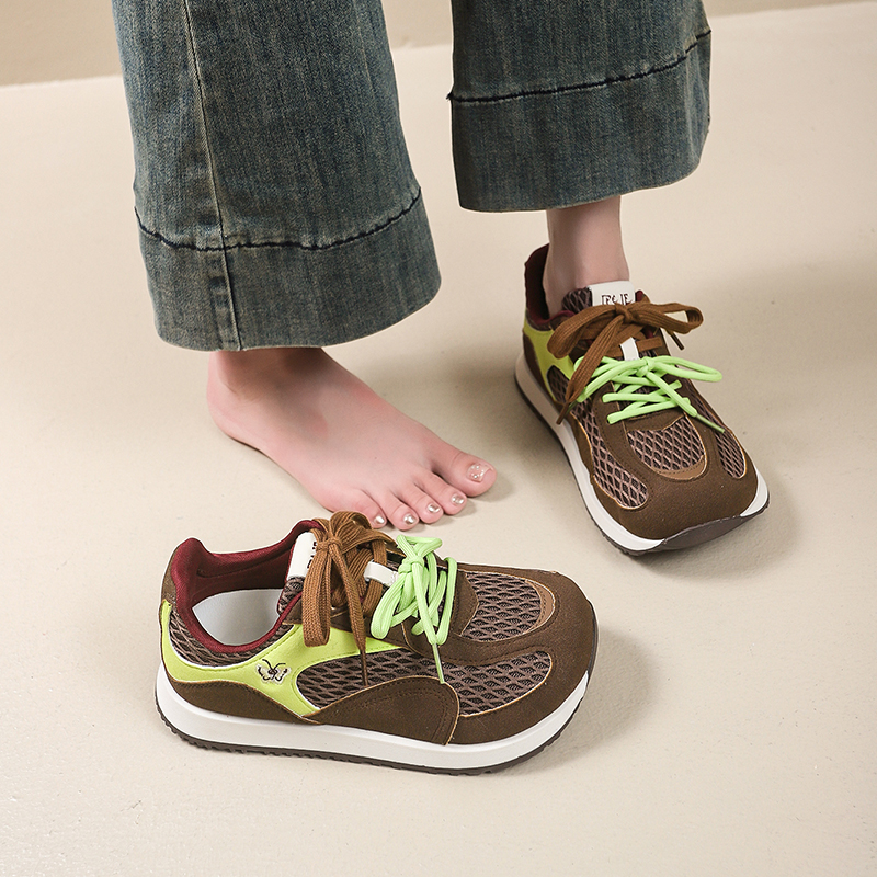 轻便运动鞋 网红丑萌德训鞋 厚底透气网面休闲阿甘鞋 夏季 女2025新款