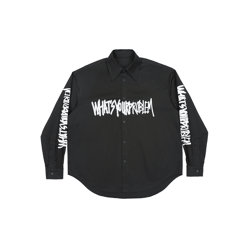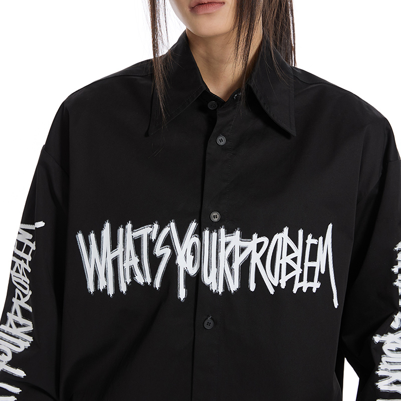 暗黑翻领宽松纯棉休闲情侣外套 春秋潮流涂鸦印花美式 BTW长袖 衬衫