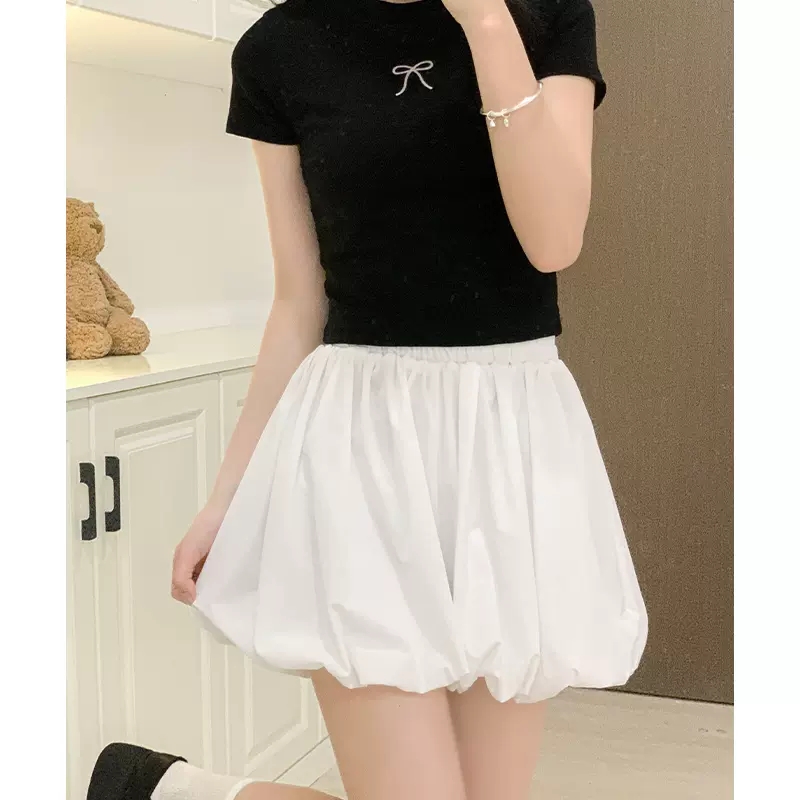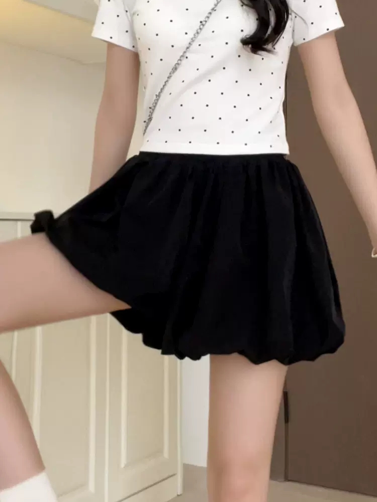 高腰显瘦休闲小个子蓬蓬灯笼短裤 黑色花苞裙裤 2025新款 薄款 女夏季