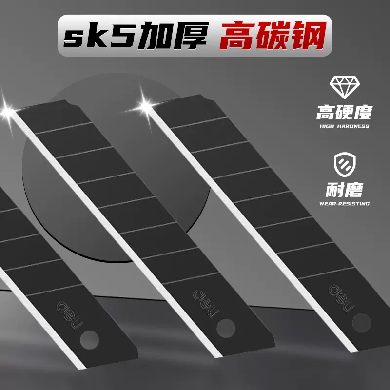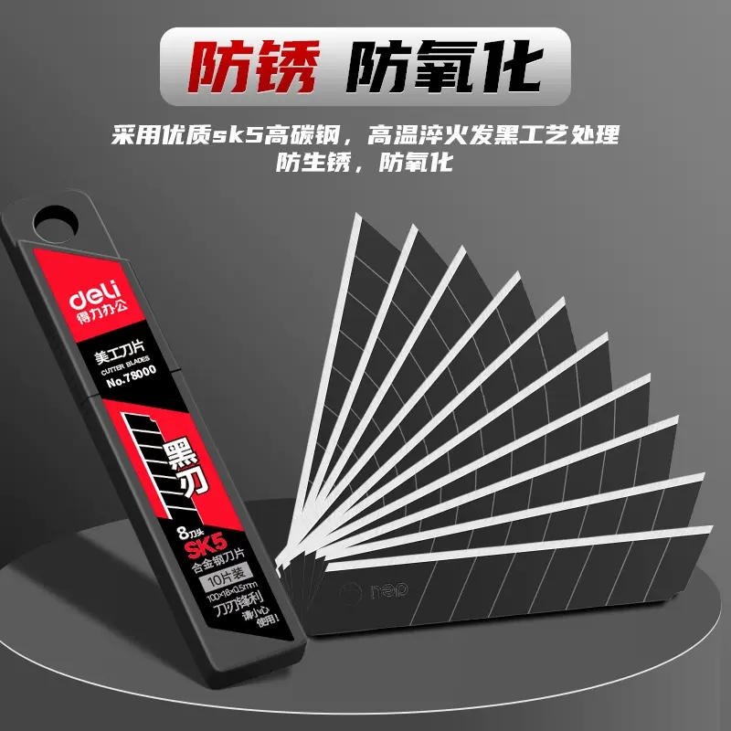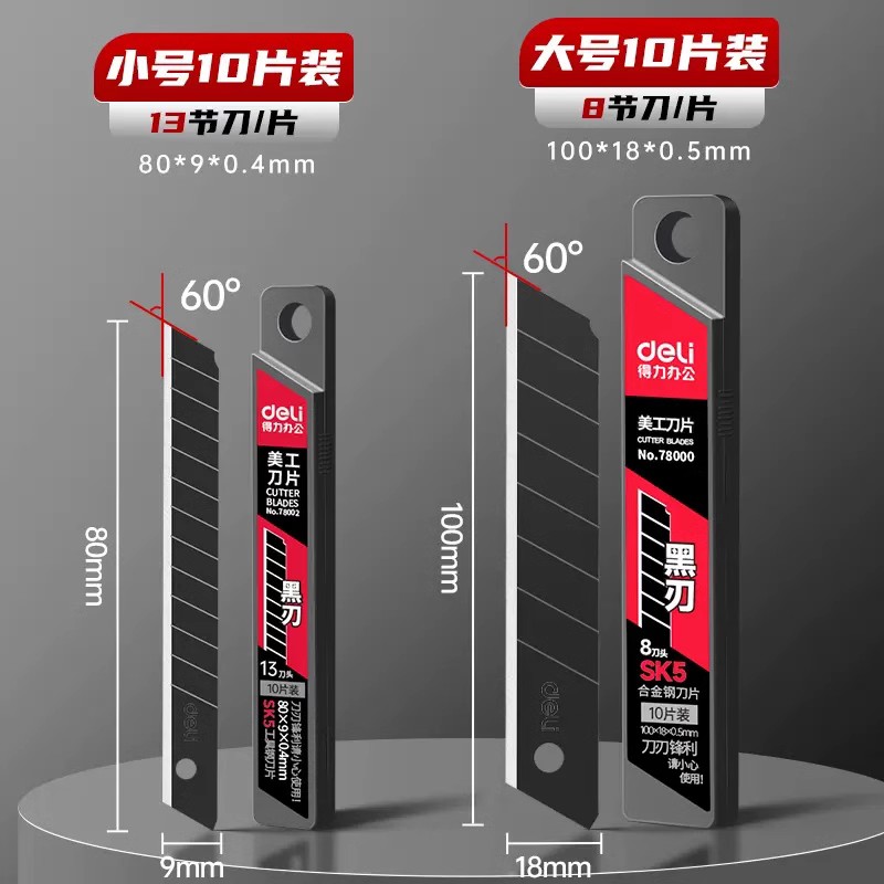 得力黑刃美工刀片大号手工壁纸刀架替换刀片裁纸刀雕刻刀拆快递刀防粘防锈30°尖锐刀头加厚SK5合金钢刀片