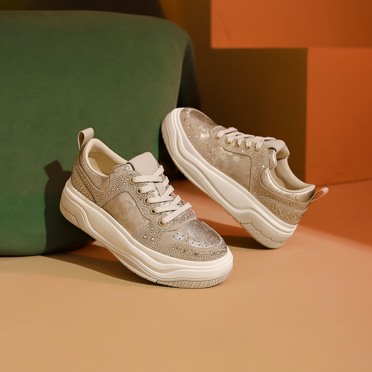 舒适RCA245301 增高板鞋 诺贝达女鞋 秋国风印花水钻厚底休闲板鞋