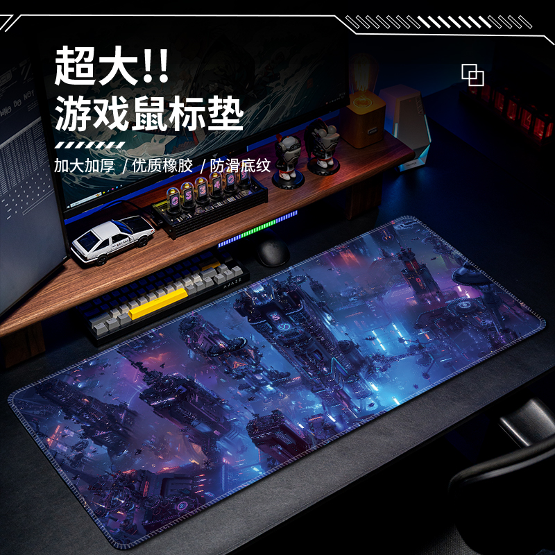 赛博朋克鼠标垫电竞男生电脑桌垫桌面鼠标垫超大办公防滑键盘垫