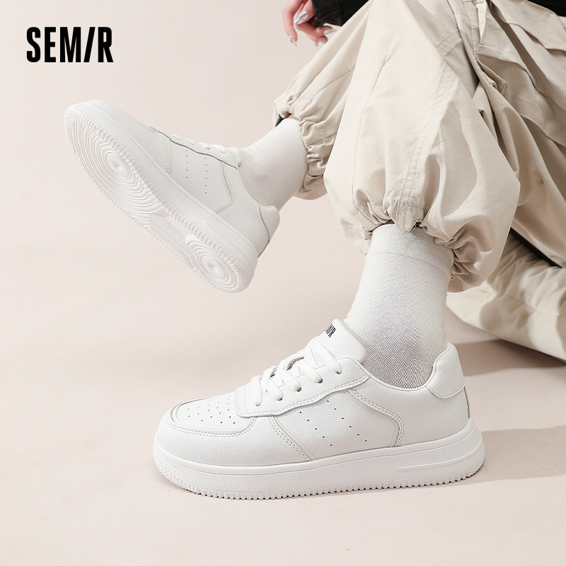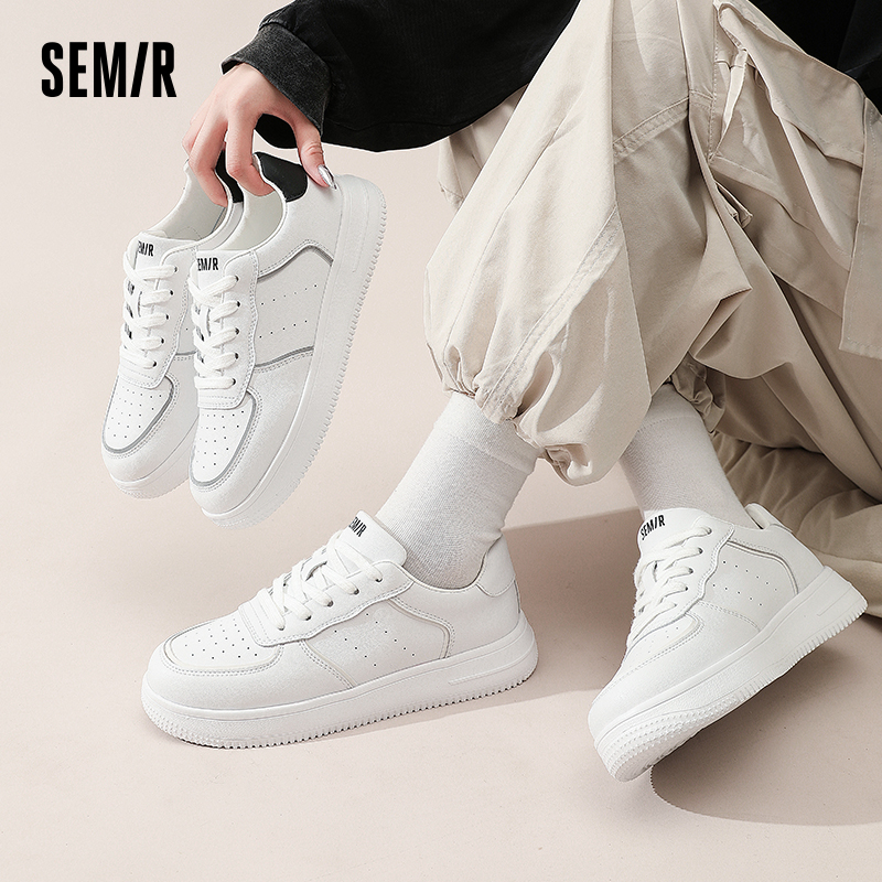 小白鞋 白色运动鞋 女2025新款 轻便百搭休闲厚底板鞋 秋季 Semir女鞋
