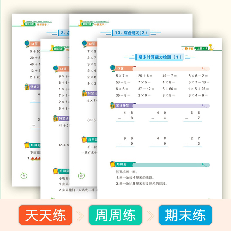 计算高手一年级二三年级上册口算题竖式 题应用题三合一小学数学1年级2年级3年级上册每天10分钟一日一练巩固基础提高训练童班小鹿