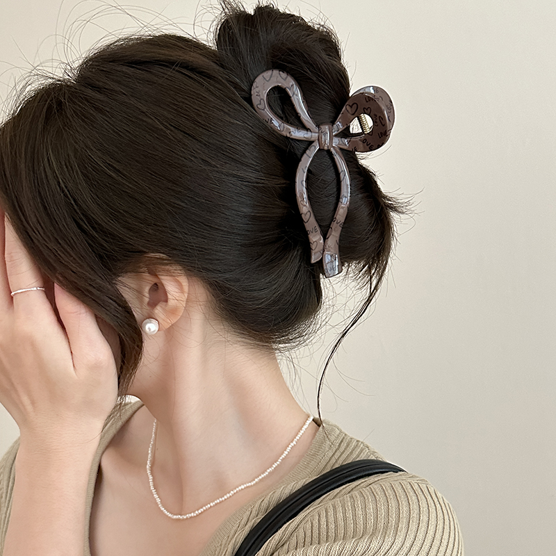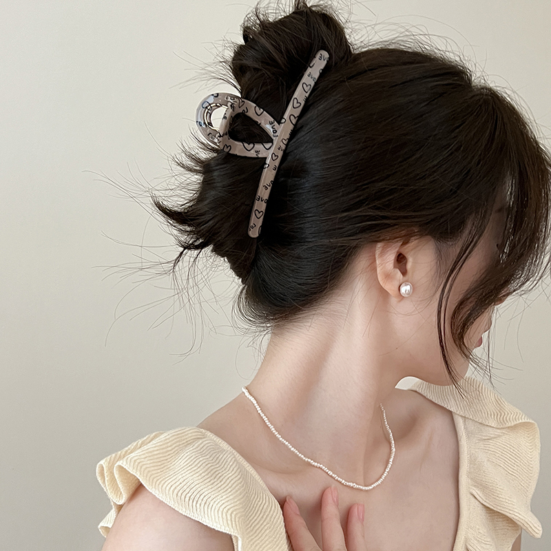 复古卡其色抓夹女韩国多巴胺小众设计感发卡后脑勺盘发鲨鱼夹发饰