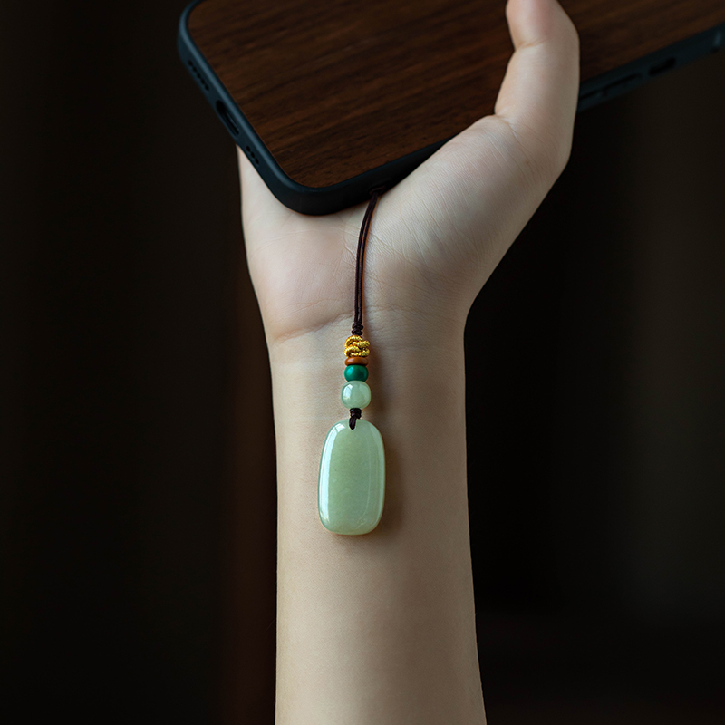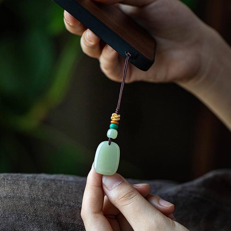 沐匙天然正品 和田玉无事牌手机链女士高档玉石情侣挂件男2025新款