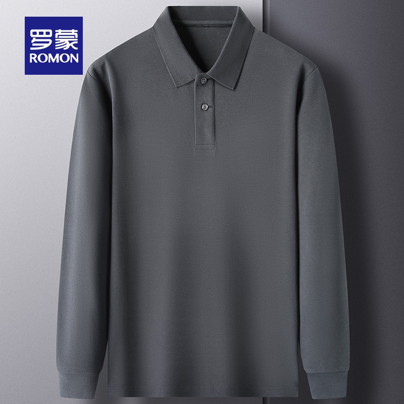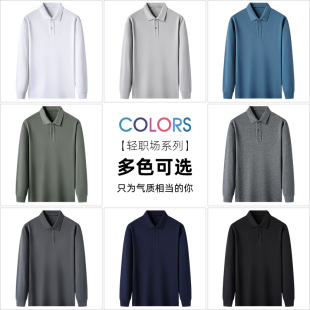 潮流纯色长袖 回力POLO衫 翻领宽松休闲打底衫 2025新款 T恤 男春秋季