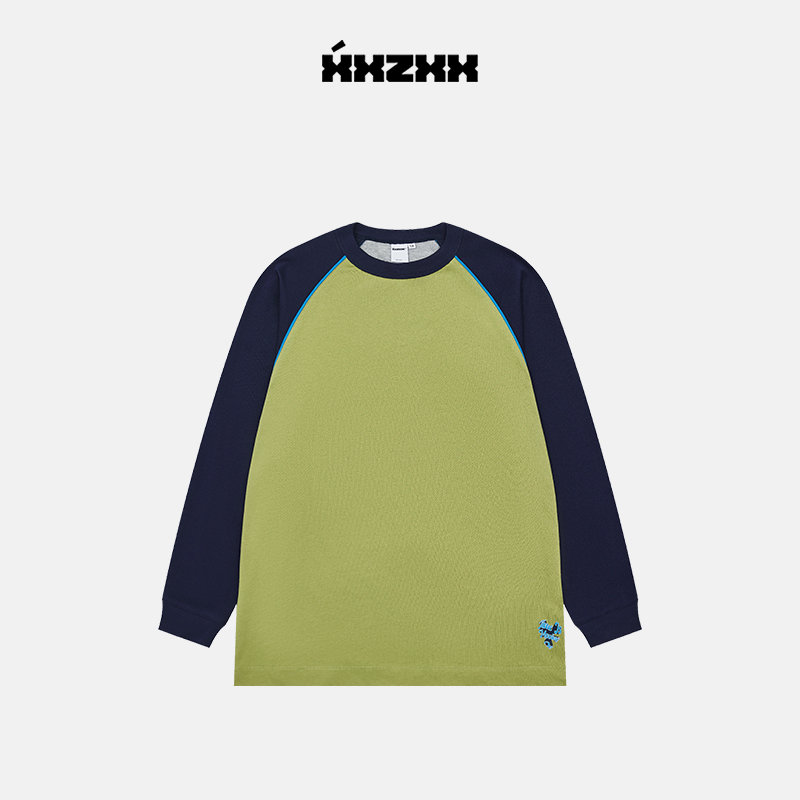 新款 XXZXX复古拼色上衣印花长袖 秋季 亲子装 2108 T恤男女潮牌童装