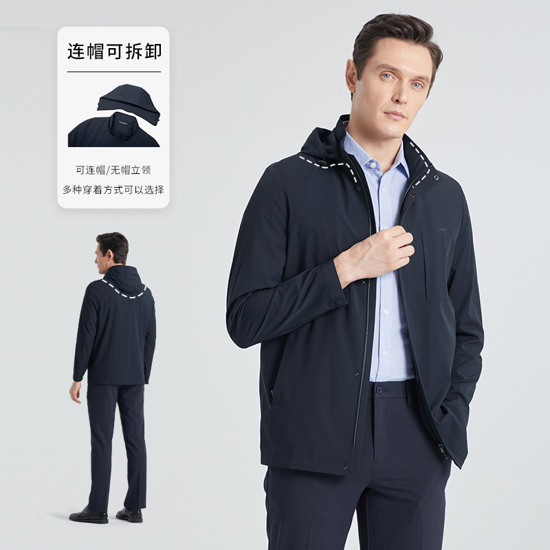 罗蒙男士 可拆卸帽 短款 夹克2025秋季 休闲免烫外套 新款 牛奶丝