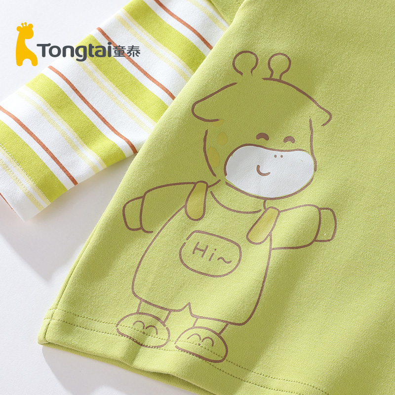 假两件条纹儿童男宝宝体恤圆领2024新款 童泰男童t恤春秋款 长袖