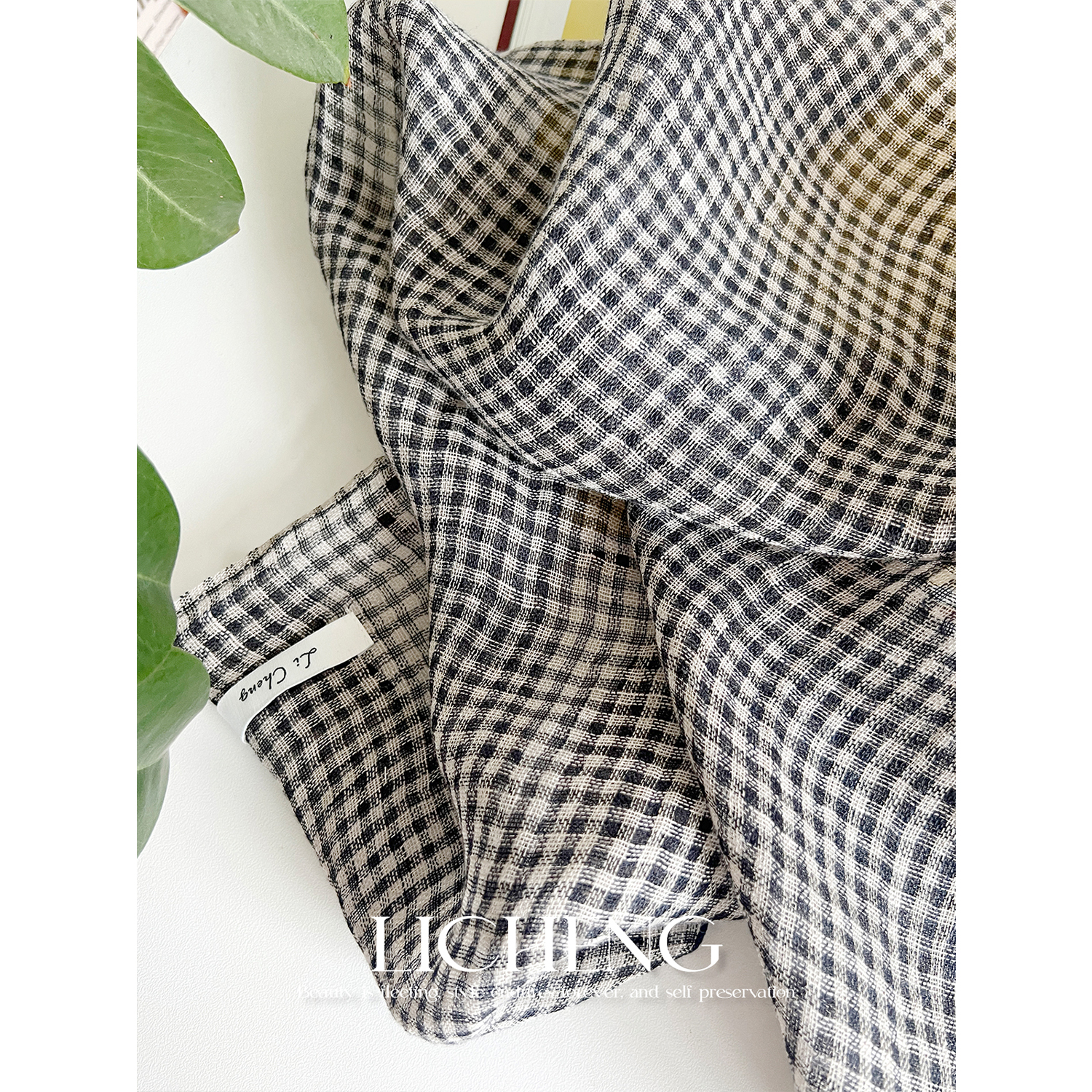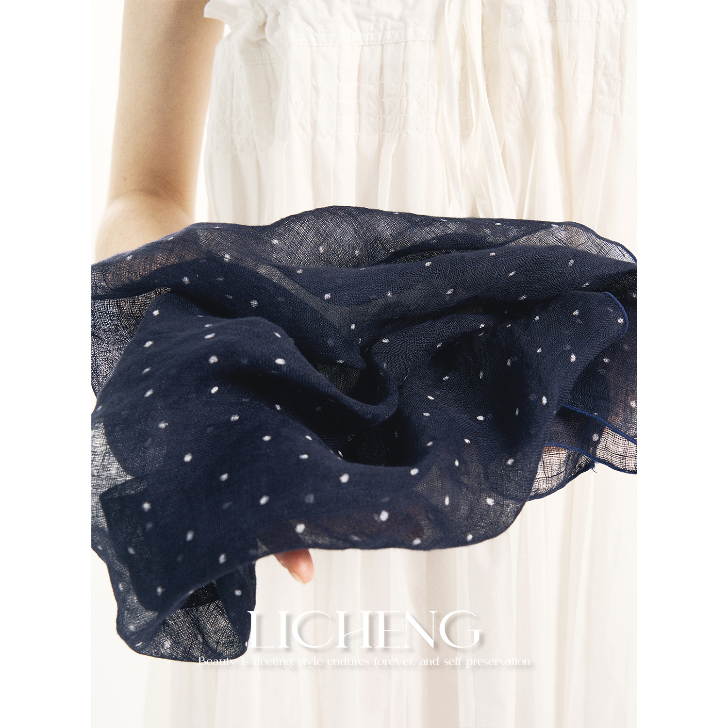 礼诚 100%亚麻丝巾洋气百搭蓝色波点方巾女透气柔软围巾披肩遮阳