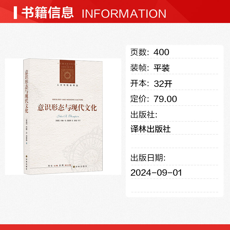 刘东 等 英 著 图书籍 社 意识形态与现代文化 新华书店正版 编 约翰·B.汤普森 宗教理论经管 译 高铦 译林出版 励志