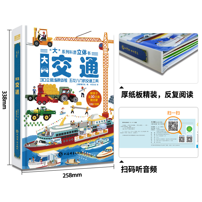 精装 硬壳扫码 大交通3D立体翻翻书书儿童3 8岁绘本趣味科普大百科全书小学生幼少儿机关科普漫画书机关课外故事书 听音频