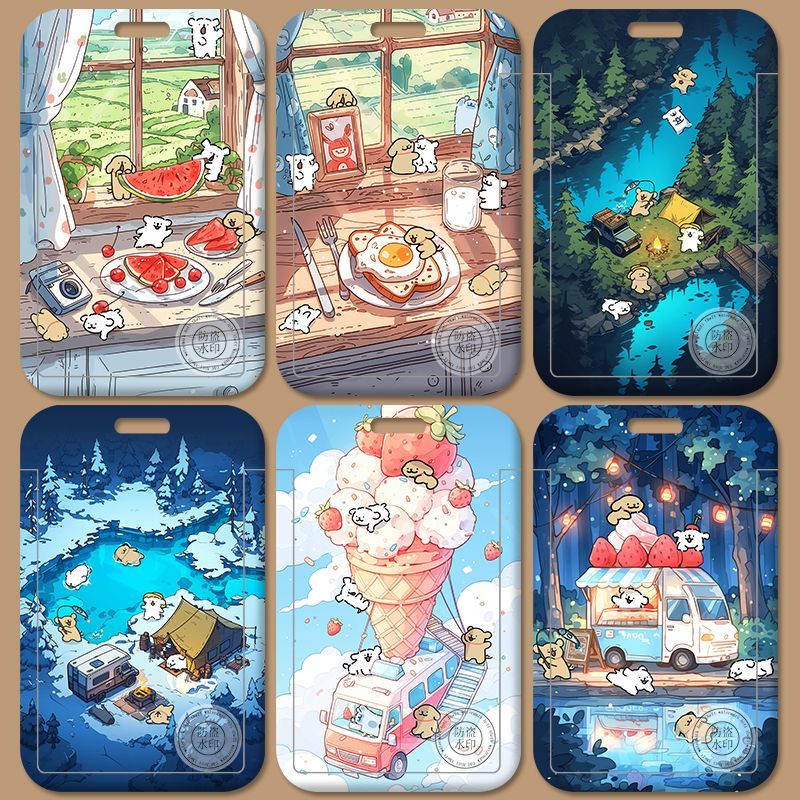 夏日清爽小狗卡套饭卡工作身份证件厂牌公交校园学生水保护套情侣