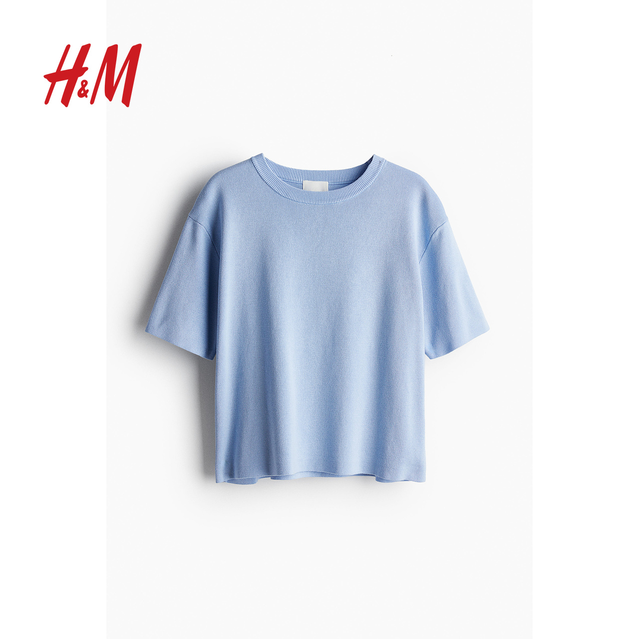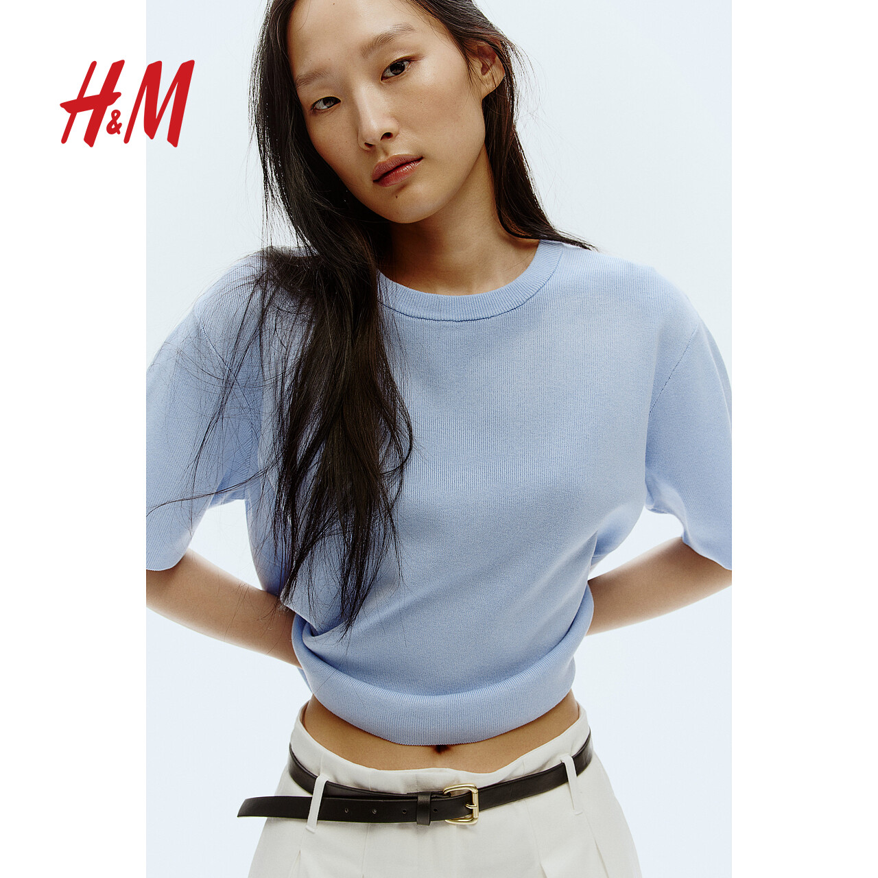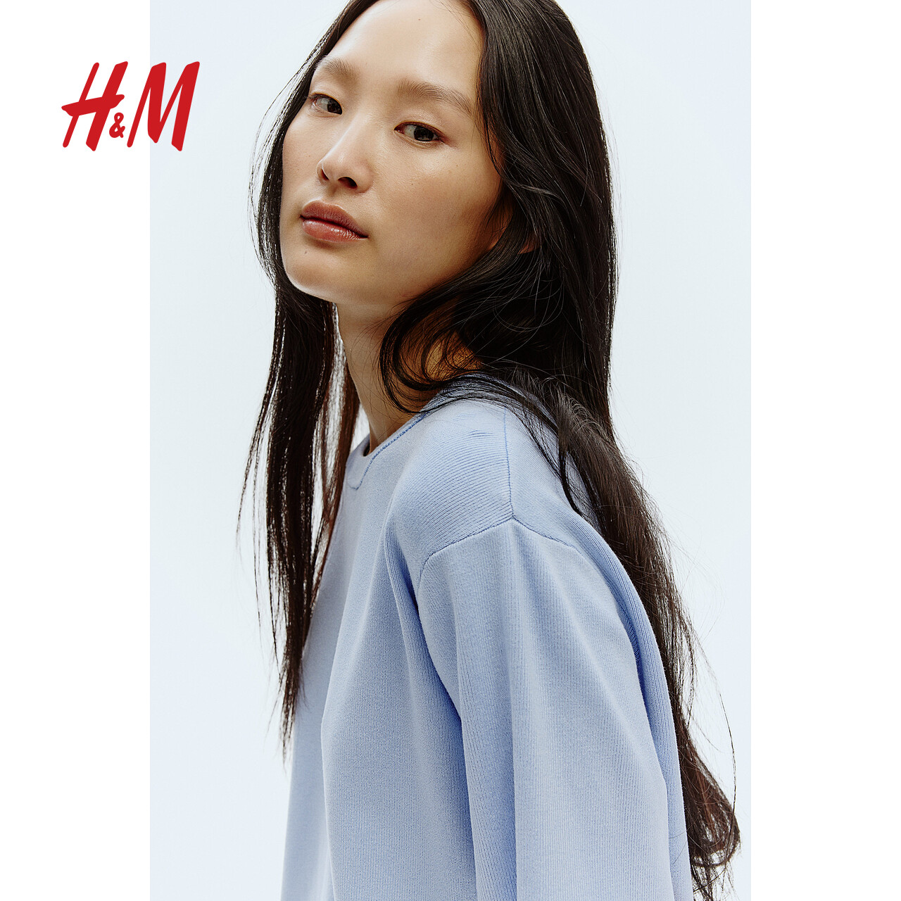 圆领休闲简约细密针织上衣1220582 秋季 HM女装 针织衫