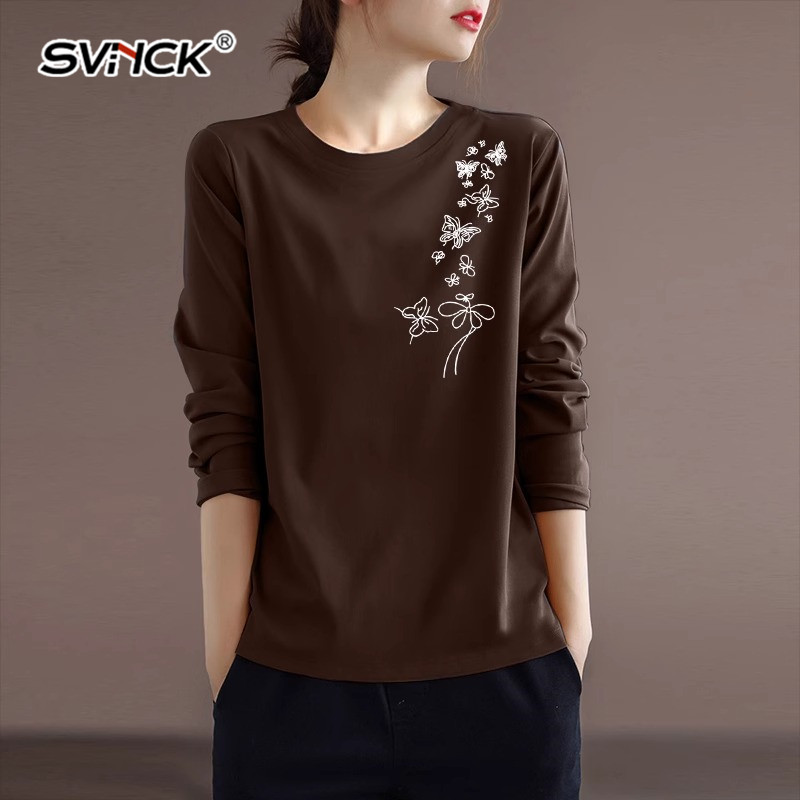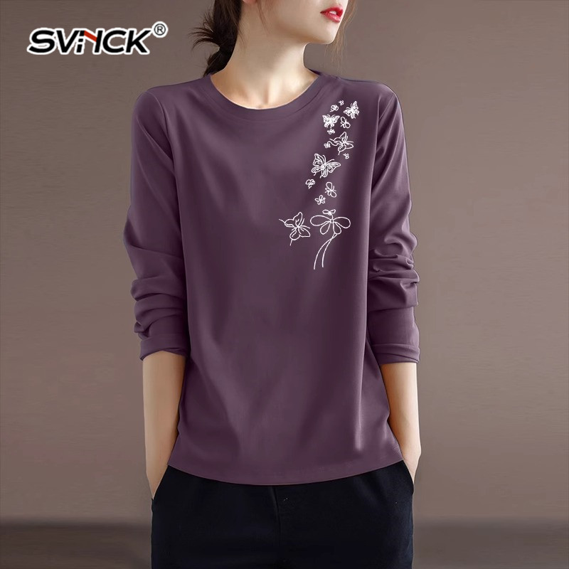 纯棉长袖 宽松减龄显瘦遮肉上衣内搭正肩打底 t恤女士春秋2025新款