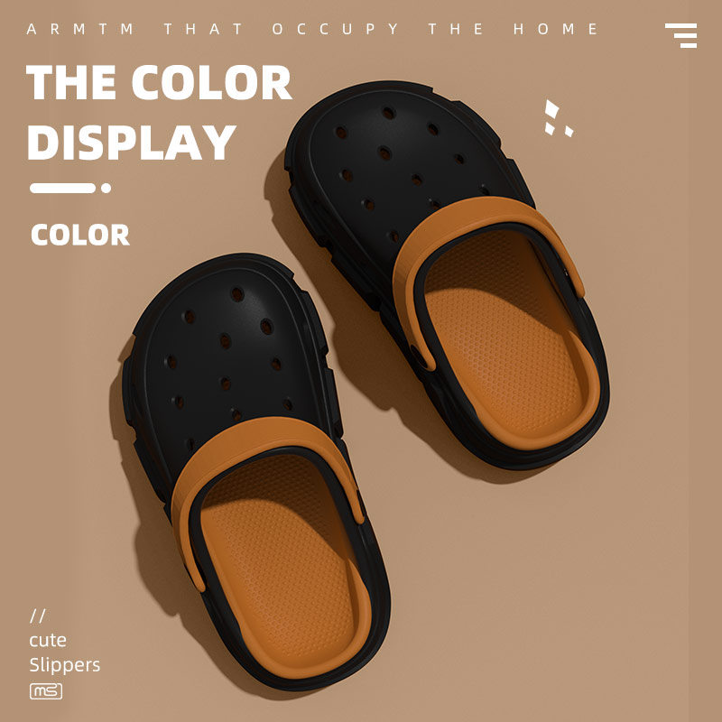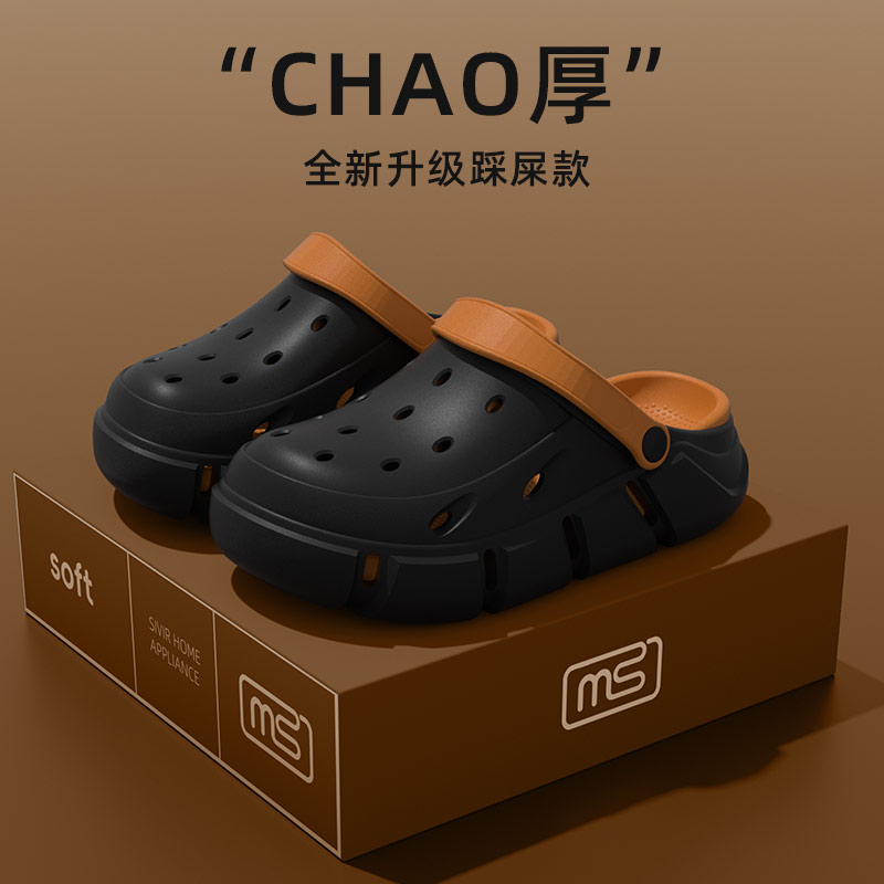 户外防滑沙滩鞋 朴西奶酪情侣厚底踩屎感洞洞鞋 包头拖鞋 夏季 男 女款