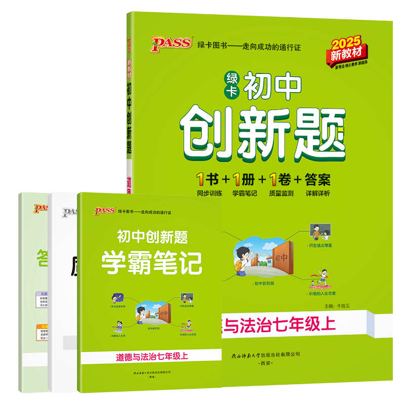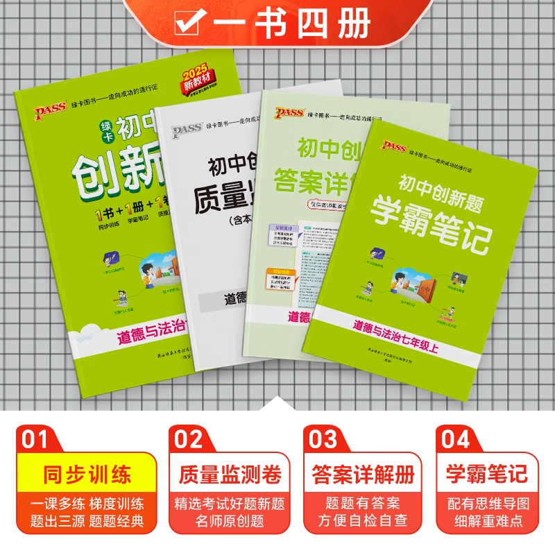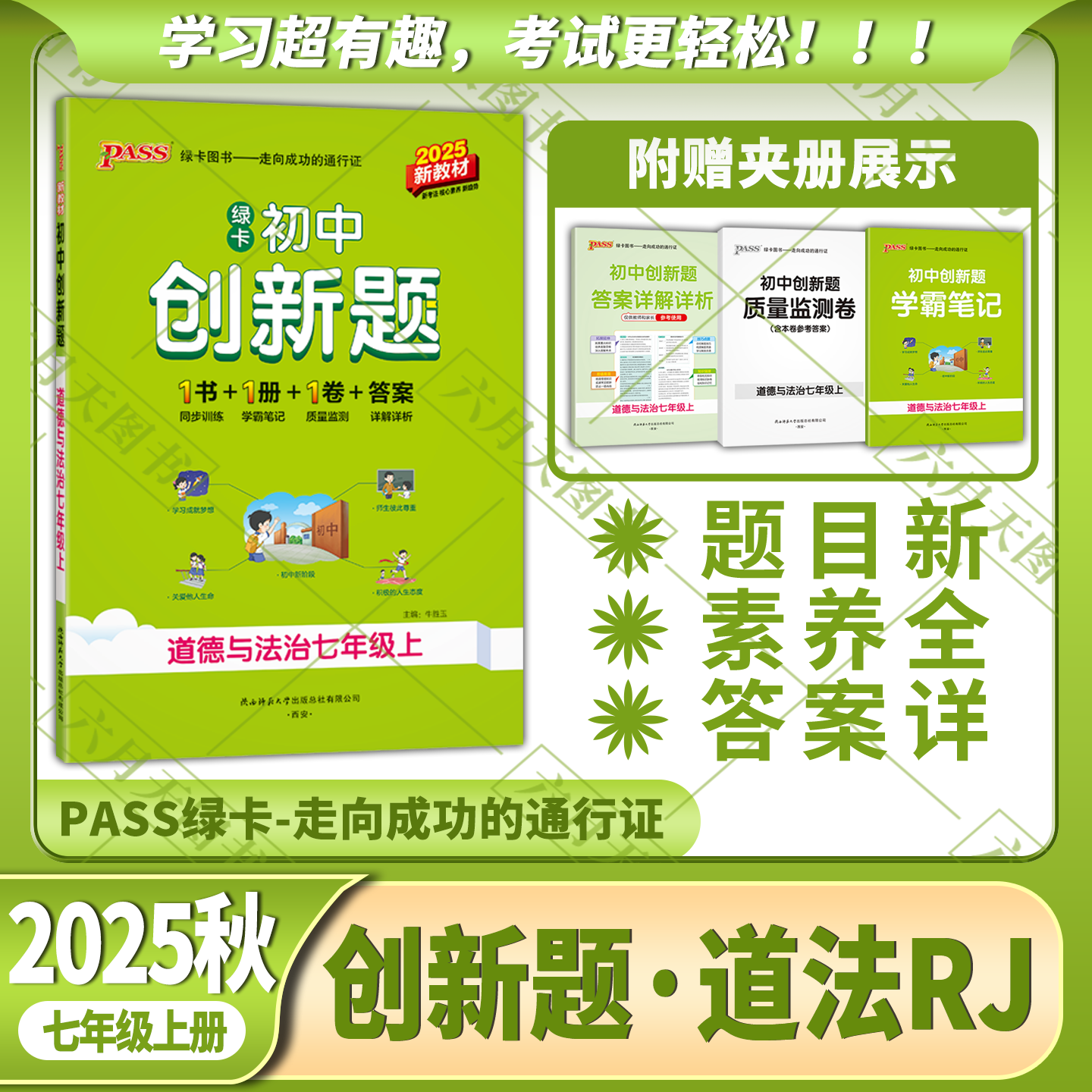 2025秋适用pass绿卡初中学霸创新题道德与法治七年级上册RJ人教版 7年级上册同步训练学霸笔记质量监测答案详解详细初一必刷题课时