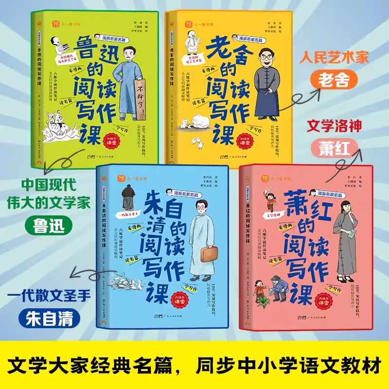 三四五六年级阅读课外书文学经典 漫画名家名篇全套4册 漫画书小学生阅读课外书籍 阅读写作课 书 鲁迅老舍朱自清萧红
