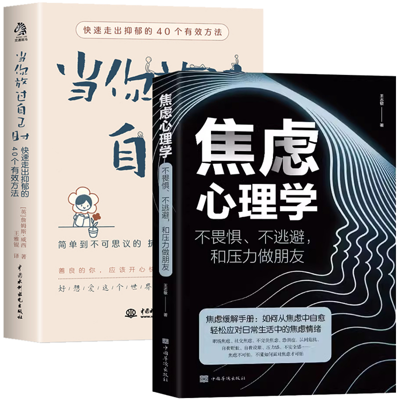 战胜抑郁走出抑郁症 焦虑心理学+当你放过自己时 30天自我康复训练抑郁症治愈书籍焦虑缓解心理疏导自我治疗静心书籍 书2册 正版