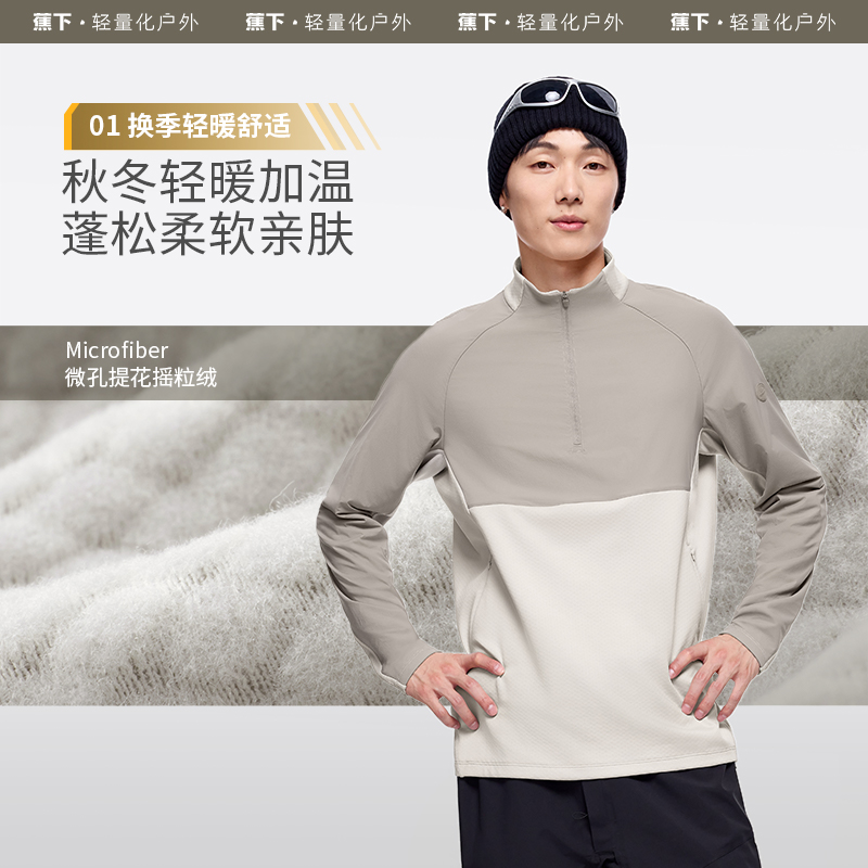 排汗透气上衣男装 蕉下男士 保暖打底衫 T恤WP940秋季 半拉链防风长袖