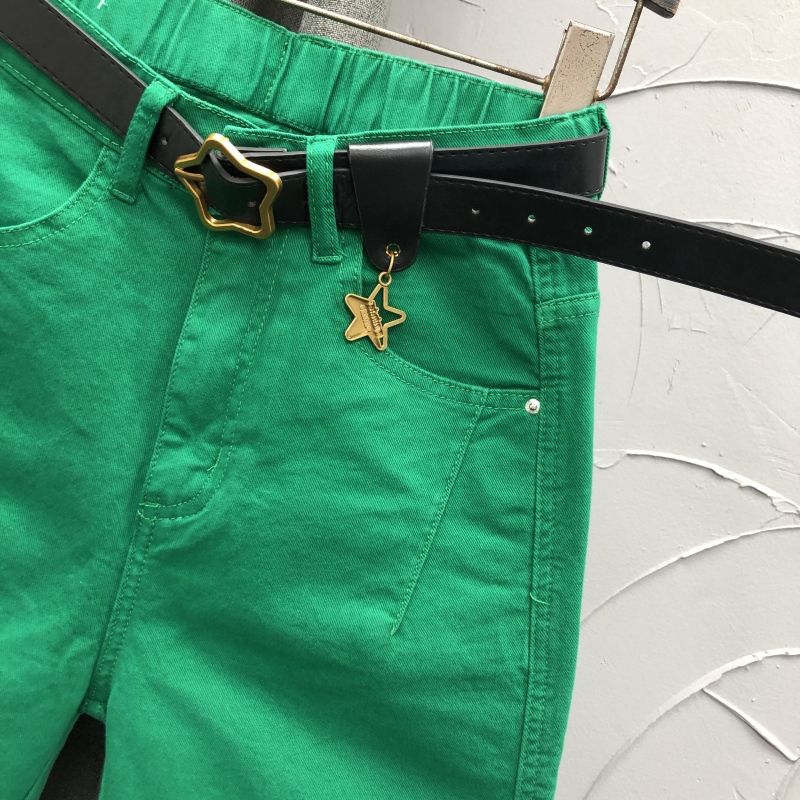 宽松洋气水洗小脚萝卜垮裤 时尚 女休闲2025秋季 绿色高腰哈伦牛仔裤