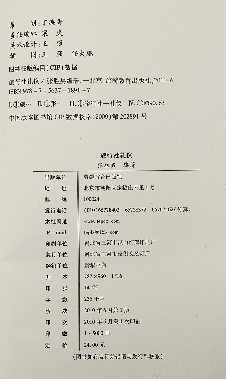 旅行社礼仪9787563718917张胜男主编旅游教育出版 社
