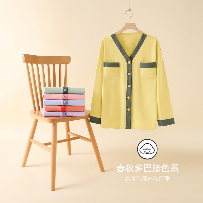 时髦假两件带胸垫套装 25年新款 柔软纯棉家居服长袖 秋冬季 睡衣女款