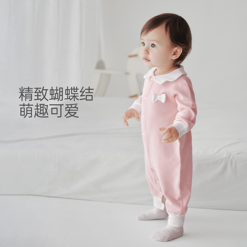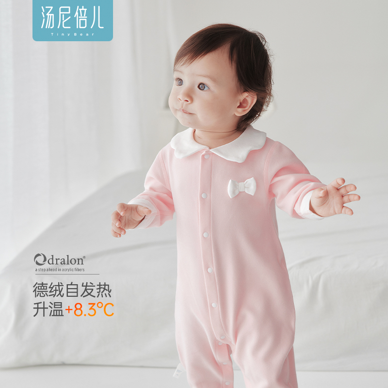 汤尼倍儿婴儿连体衣德绒秋冬季 新生儿薄绒哈衣女宝宝衣服 保暖秋装