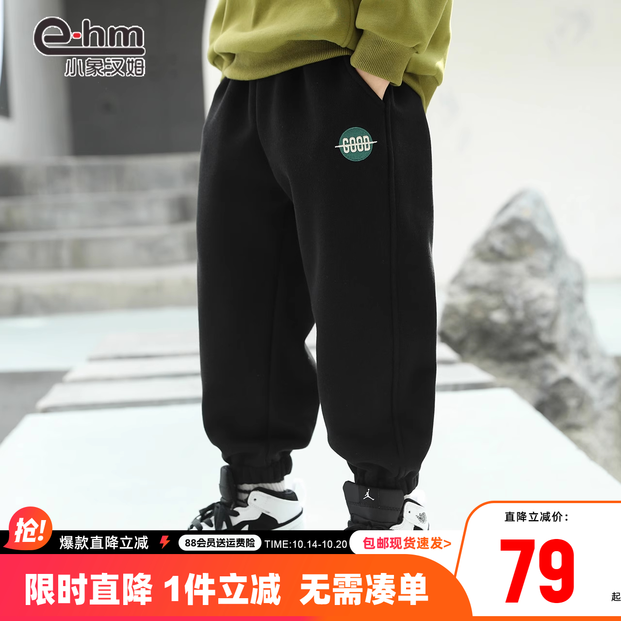 保暖2025束脚长裤 小象汉姆童装 长裤 儿童一体绒冬装 男童加绒运动裤