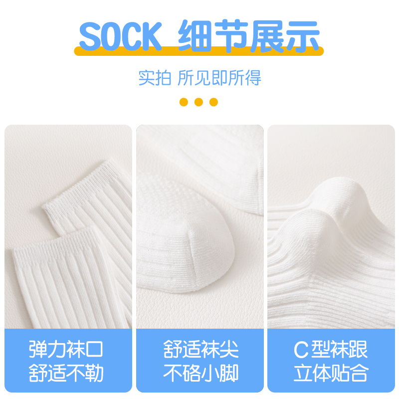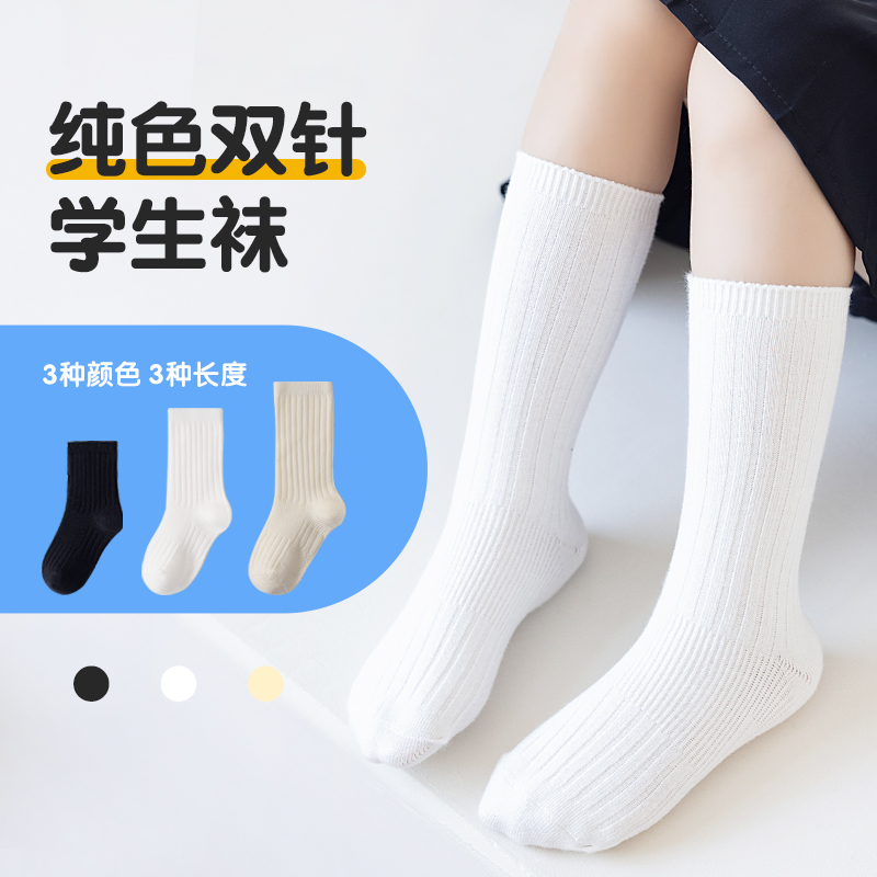 女童小腿袜男童黑色中筒袜纯棉春秋儿童袜子纯色短袜白袜宝宝棉袜