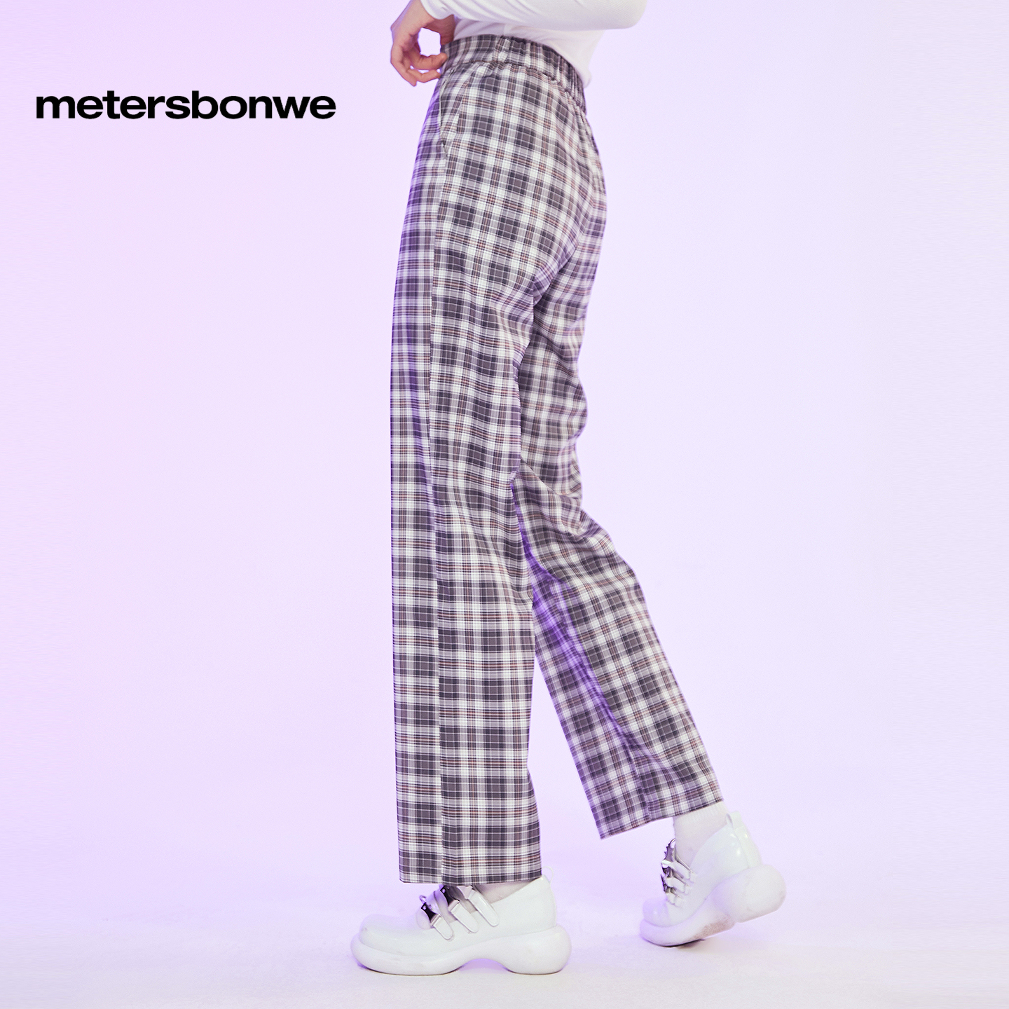 长裤 美特斯邦威格纹裤 女士春秋高腰显瘦气质高级廓形舒适阔腿裤