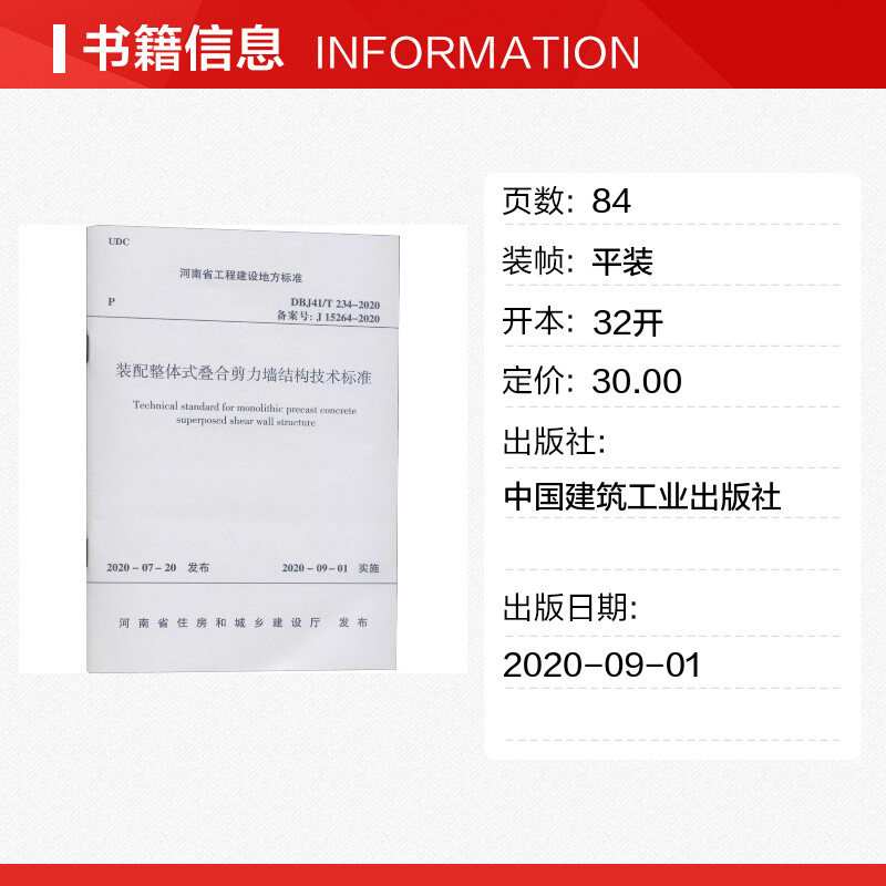 备案号 配整体式 234 装 书籍 DBJ41 正版 叠合剪力墙结构技术标准 新华书店旗舰店文轩官网 15264 2020