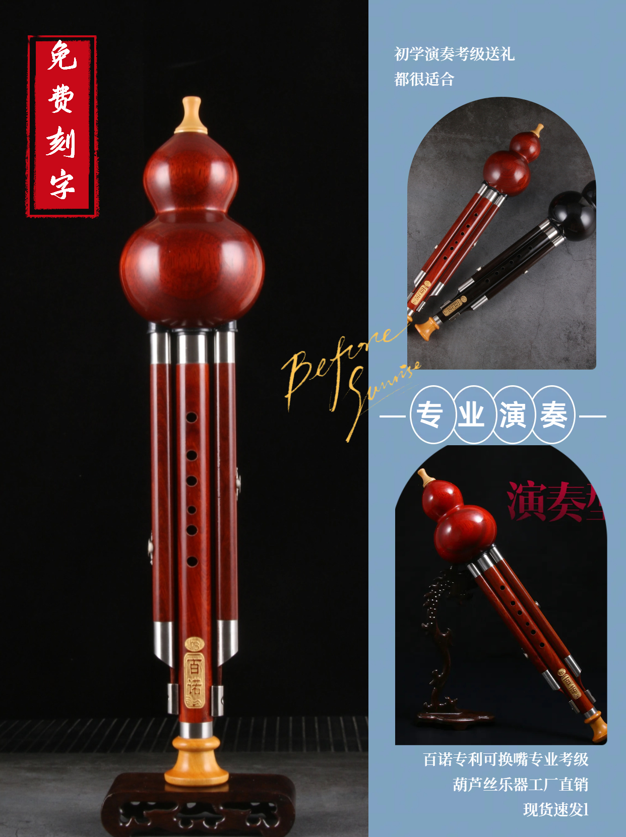 全红木葫芦丝降b调成人初学专业演奏型葫芦丝黑檀木C调学小生入门