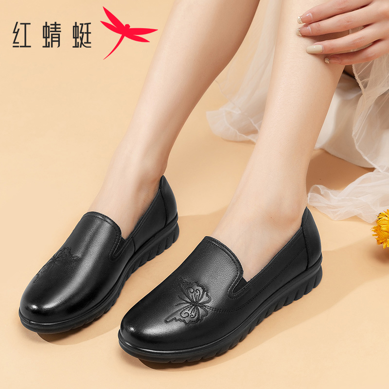 仙女风瓢鞋 秋季 浅口百搭中跟奶奶鞋 大码 真皮单鞋 女鞋 粗跟2025新款