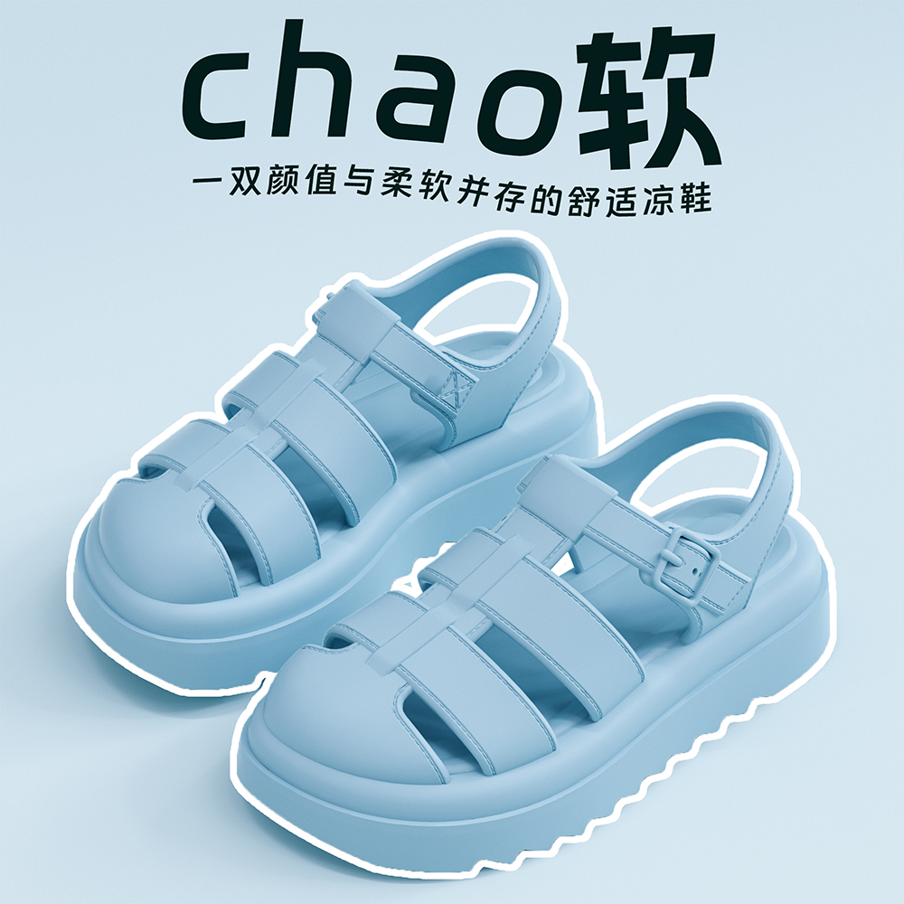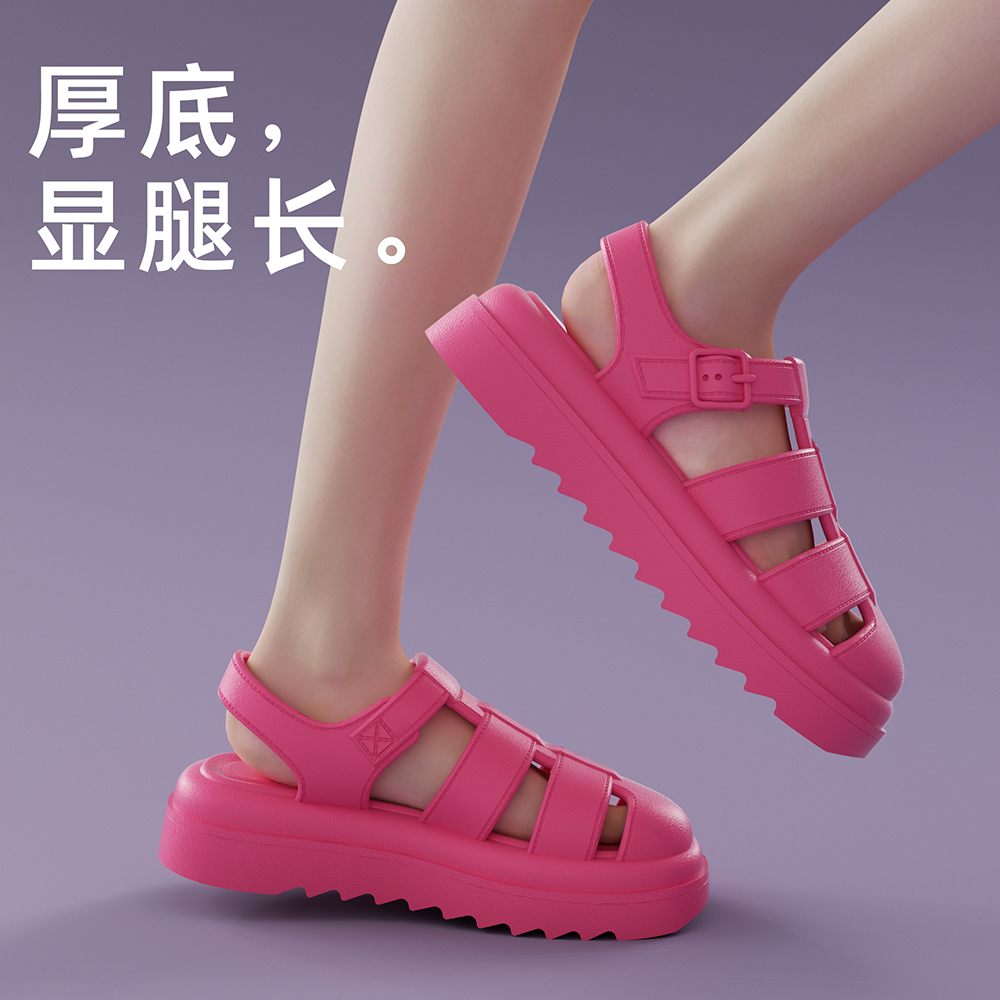 女夏 休闲踩屎感eva沙滩凉鞋 新款 网红奶黄色简约风户外防滑罗马鞋
