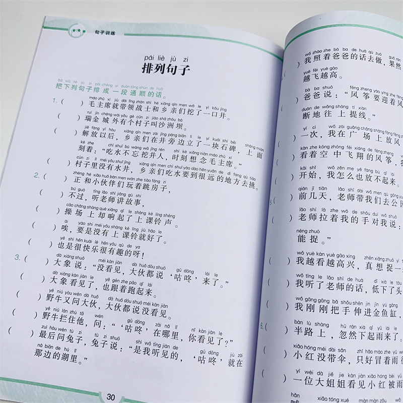 2本小学生一年级上下册句子训练部编人教版 1年级扩写句子把句子补充完整句子排序加标点 语文造句训练照样子仿写句子课堂课业本
