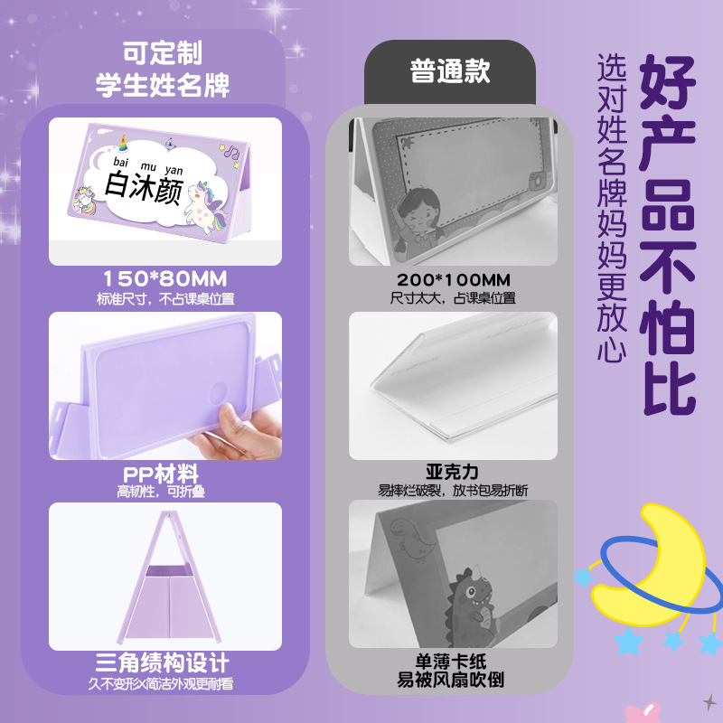 姓名牌小学生桌牌一年级新生开学入学名字桌面台牌定制可折叠防摔亚克力幼儿园班级座位牌纸质名牌台卡席卡