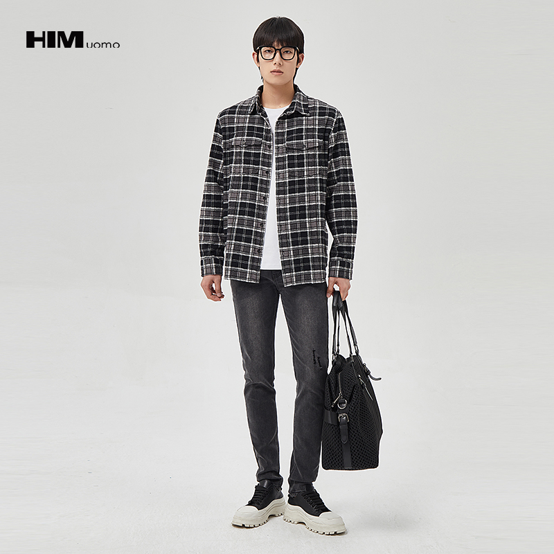GFX1E900571 24春新品 GXG男装 黑色激光烧花通勤牛仔衬衫