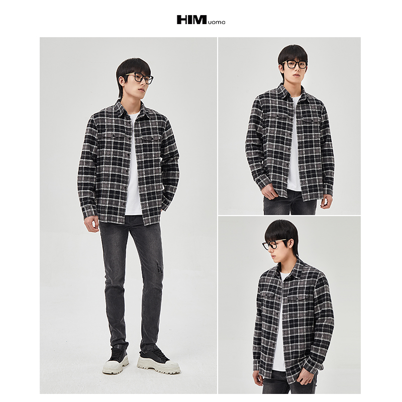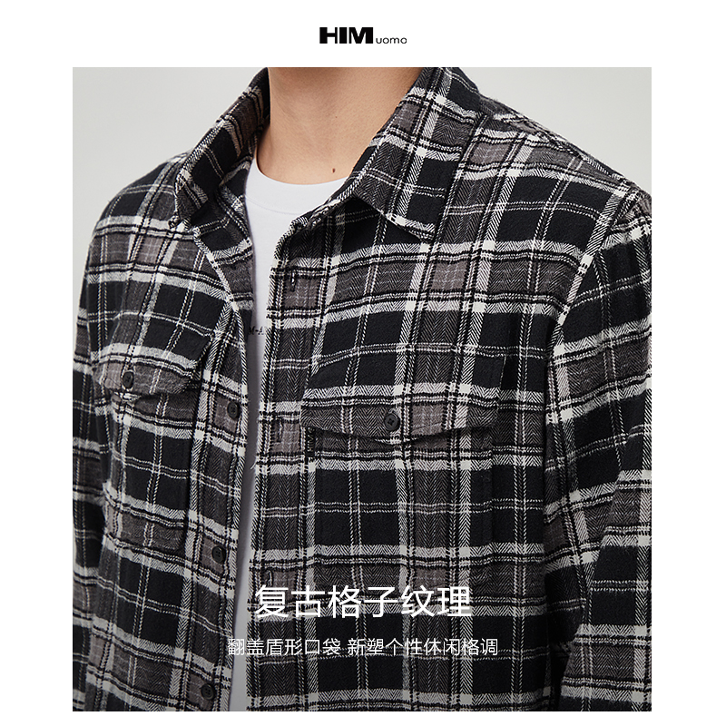 灯芯绒长袖 高级感2025新款 衬衣加绒A 男秋季 班尼路S&K黑色抗皱衬衫